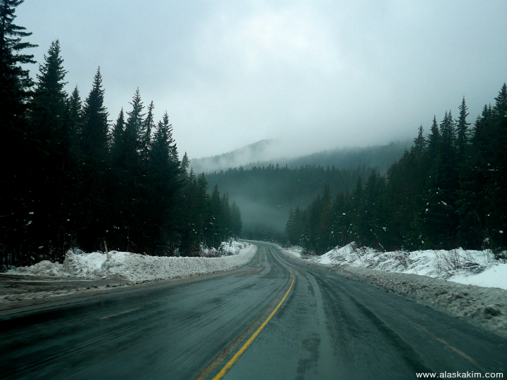 비가 그치더니, 앞에는 구름들이 도로까지 내려와 둥지를 틉니다.