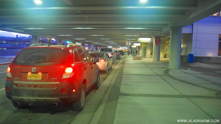 앵커리지 공항은 이렇게 막바로 나오는 출입구에 차를 세울 수 있어