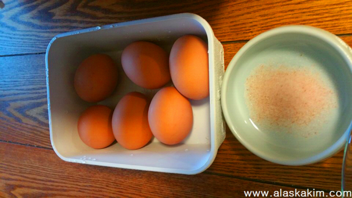 자! 이제 오리 파티를 하기 전 애피타이저로 삶은 계란이 나왔습니다.