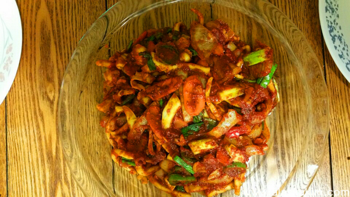 오리백숙만 있으면 섭섭하니, 매콤 살콤한 오징어 볶음입니다.