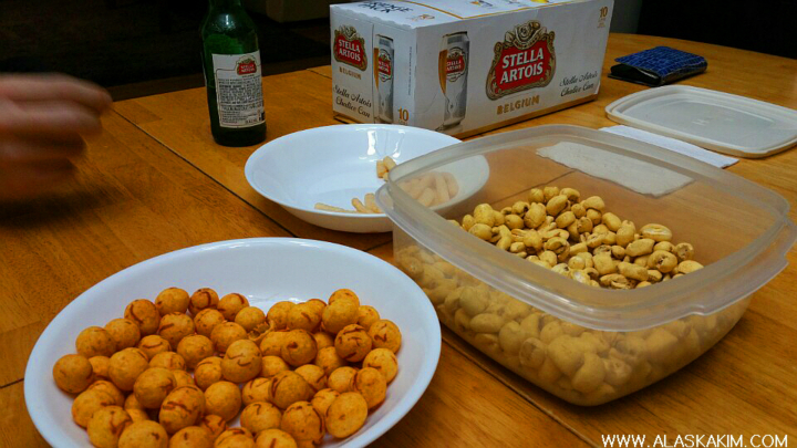 막간을 이용해 마른안주에 맥주 한잔 걸치고 본격적으로 들어갑니다.