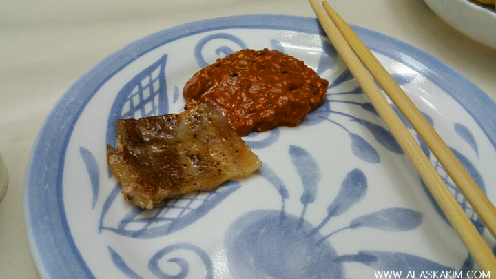 삼겹살을 기름장 말고 이렇게 된장에 찍어 먹으면 더 많이 먹게 됩니다.