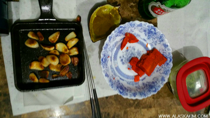 구운 마늘과 훈제연어에 또 한잔 걸쳤습니다.