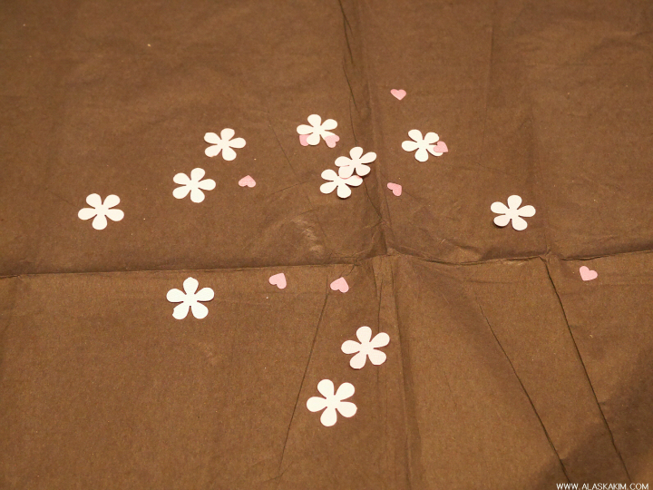 식탁에 종이를 깔고 이렇게 작은 종이꽃을 오려서 치장을 하니, 너무나
