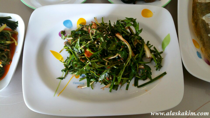 민들레 무침과 갓 잡아 올린 생선인 가자미로 한 끼 식사를