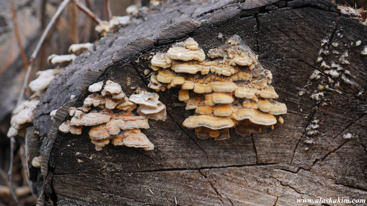 마치 기와지붕처럼 버섯들이 자라나고 있습니다.