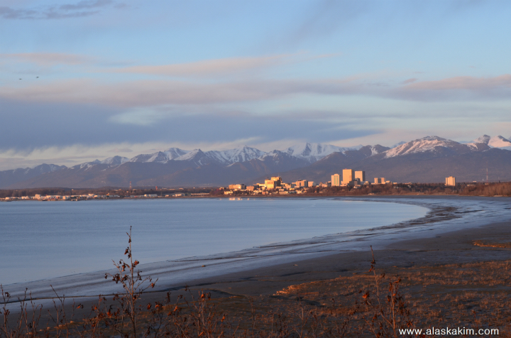 앵커리지 전경도 모두 붉은 저녁 노을빛으로 물들어 아름답기