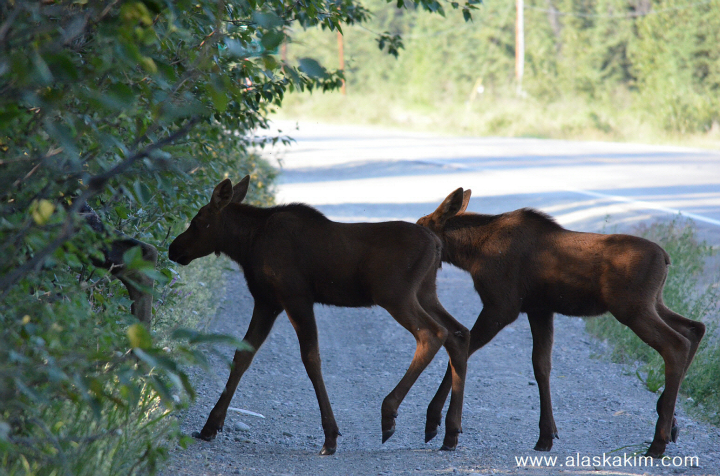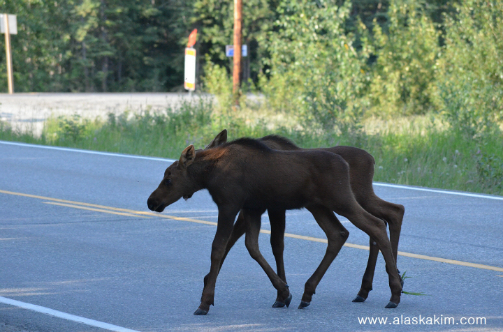 새끼 무스들도 어미 뒤를 따라 도로로 나옵니다.