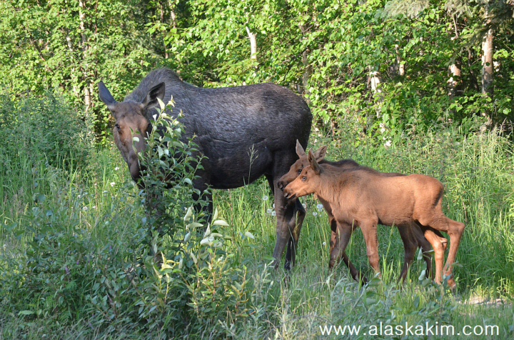 뒤에는 미끈하게 잘생긴 새끼 무스 두 마리가 뒤따라 나오네요.