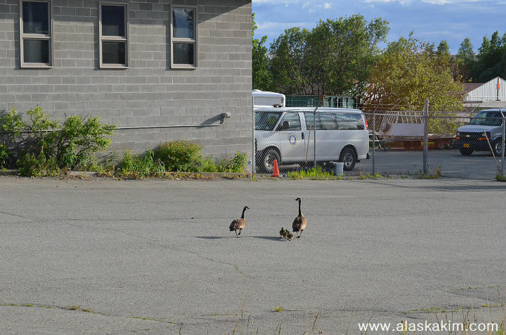 동네에 들어서니 , 캐나다 기러기가 새끼들을 데리고 마실을 나왔네요.