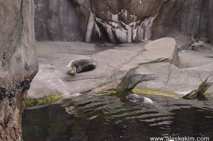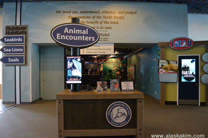 알래스카에서 나오는 다양한 해양동물들이 전시되어 있습니다.