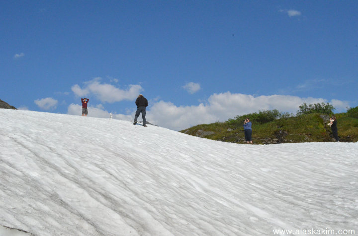 다들 차를 멈추고 만년설의 체온을 재고 있더군요.