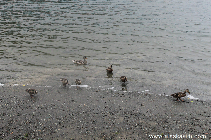 새끼들을 데리고 호수를 전세 낸 어미 청둥오리의 발걸음은 모성애가