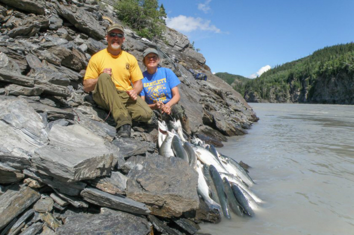 부부가 함께 33파운드 왕연어를 잡아 올렸네요.