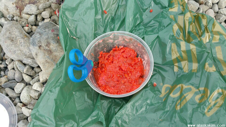 연어는 산란을 마칠 때까지 먹이를 먹지 않지만, 연어알을 보면