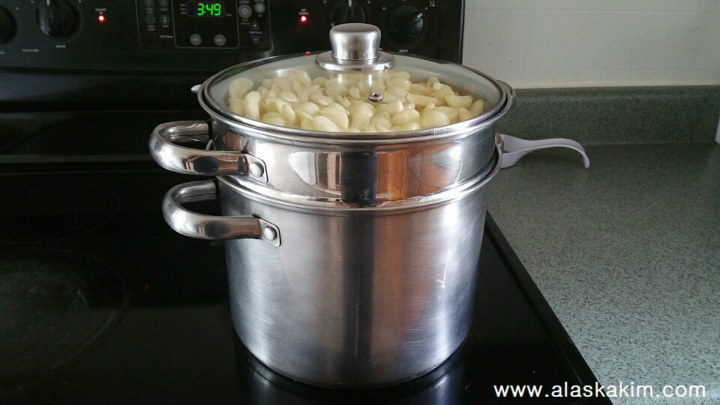 마늘 특유의 톡 쏘는 맛을 없애기 위해 이렇게 스팀 솥에 약 5분에서