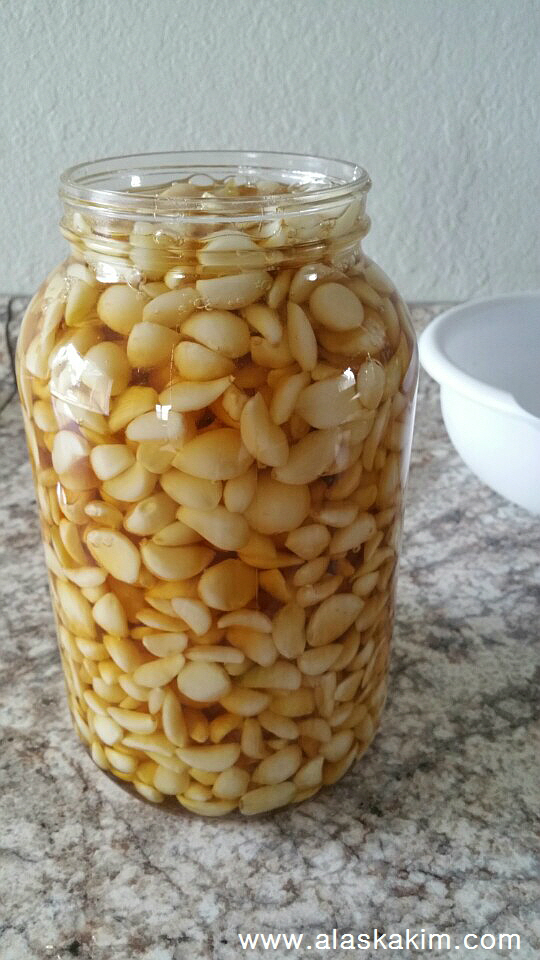 마늘이 잠길 정도로 꿀을 부으면 됩니다,