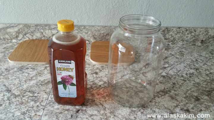 꿀마늘 절임을 하기 위해서 우선 빈병과 마늘, 꿀을 준비합니다.