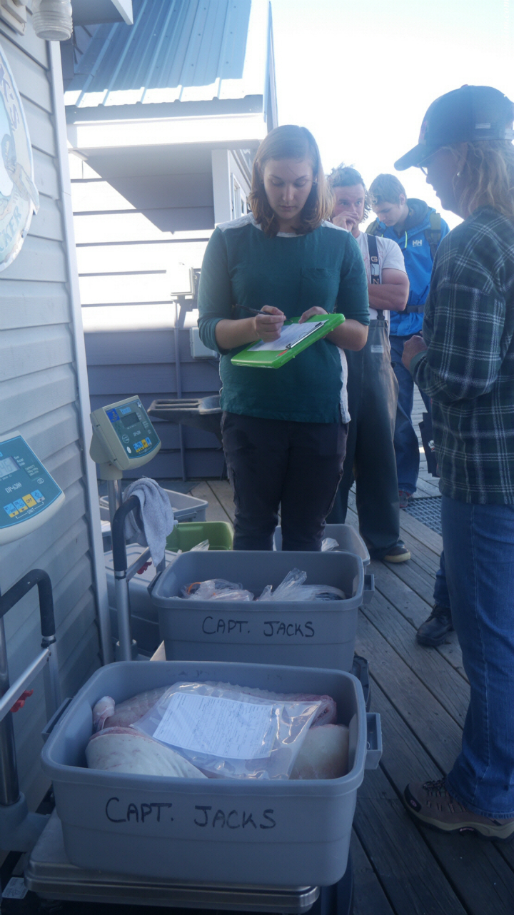 중량을 재고 주소를 받아 적는 어부의 딸입니다.