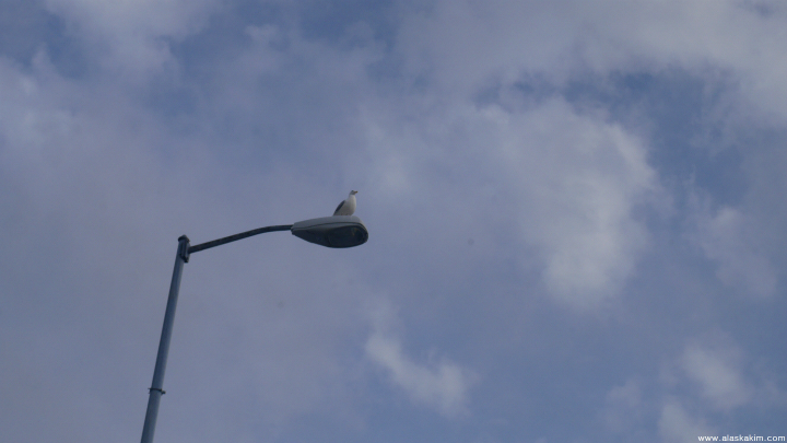 스워드 다운타운을 굳세게 지키는 갈매기 한 마리.