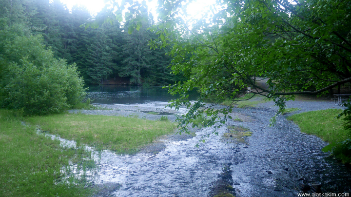 만년설이 녹아 흘러 고인 호숫가라 너무 시원합니다.