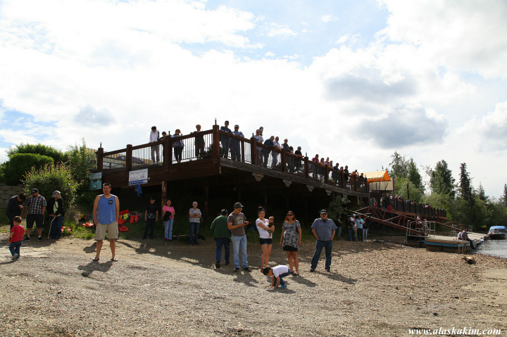 12시 반에 결승점을 향해 달려오는 보트를 보기 위해 치나강
