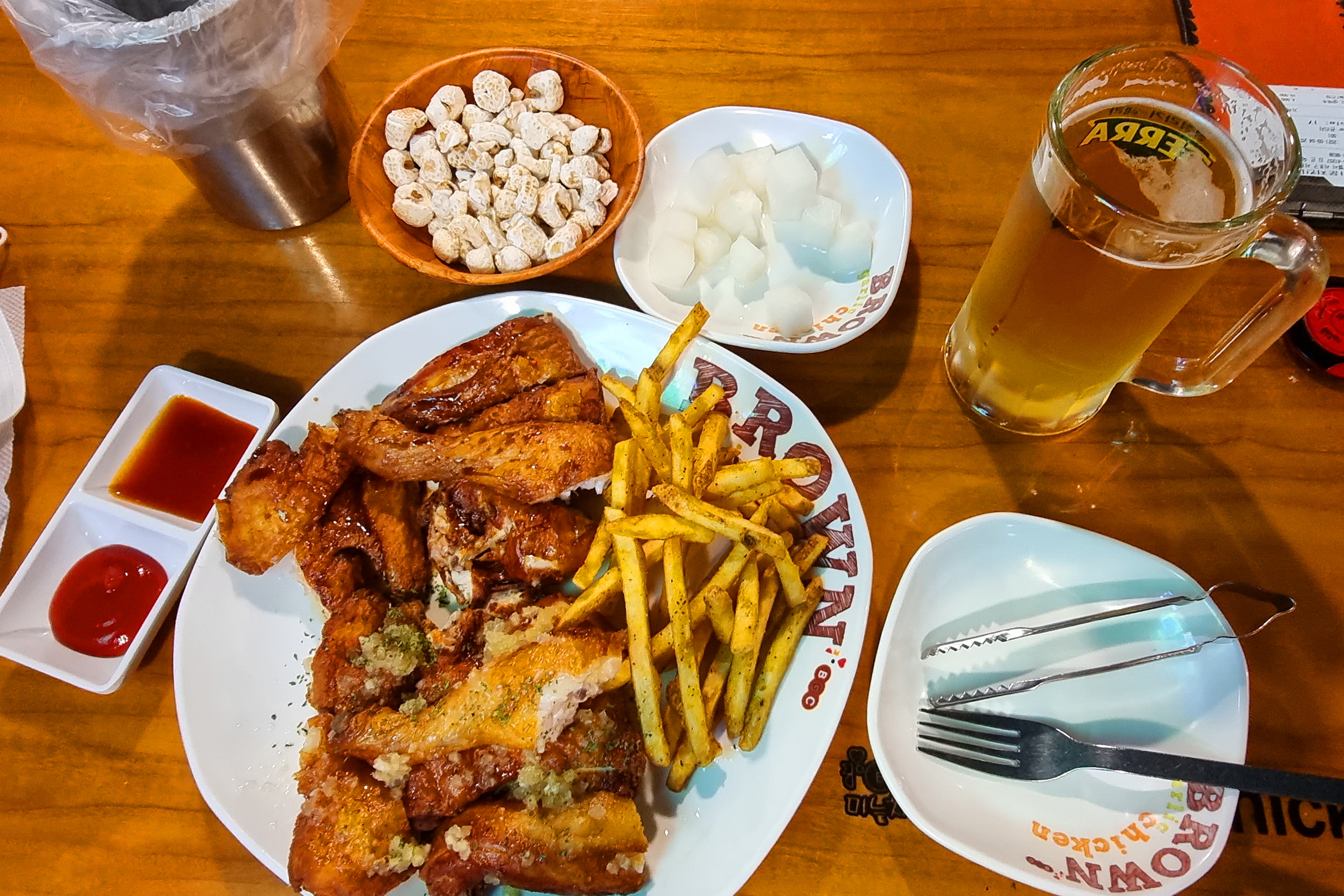 치맥을 하려고 들른 곳에서 간장치킨과 마늘 치킨