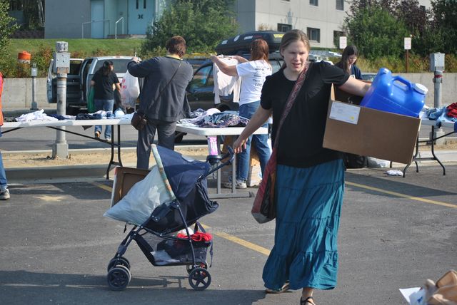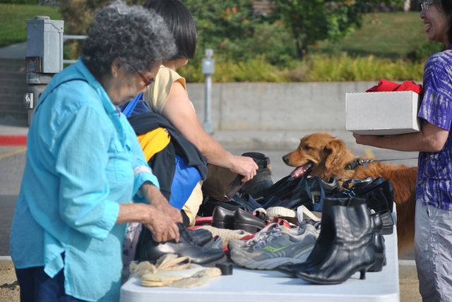 이 아주머니는 자원 봉사자 이신대 자신이 필요한 물건을 고르고 계시네요.
