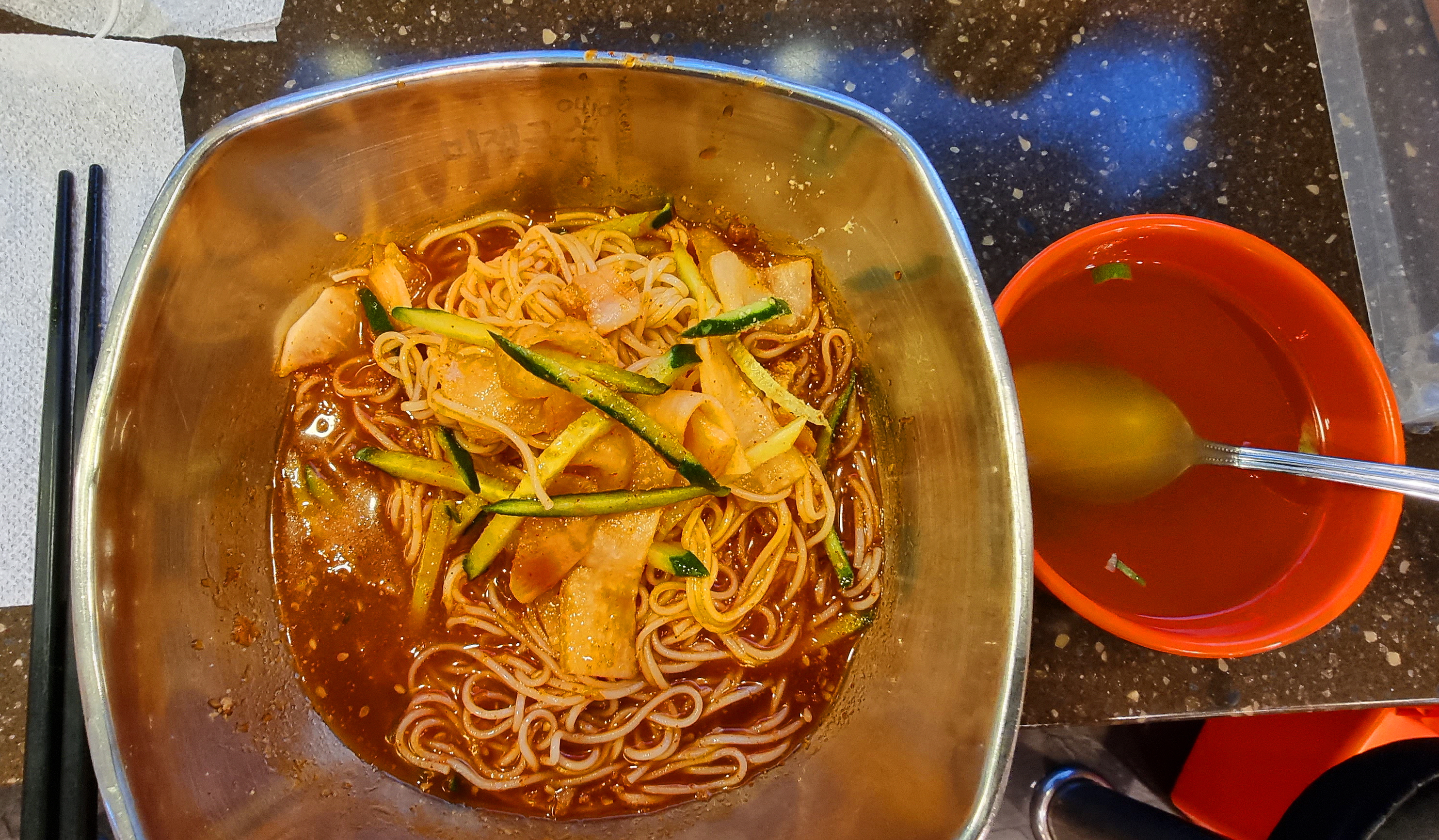 매콤 달콤한 비빔국수인데 이것도 먹다가 사진 생각나서