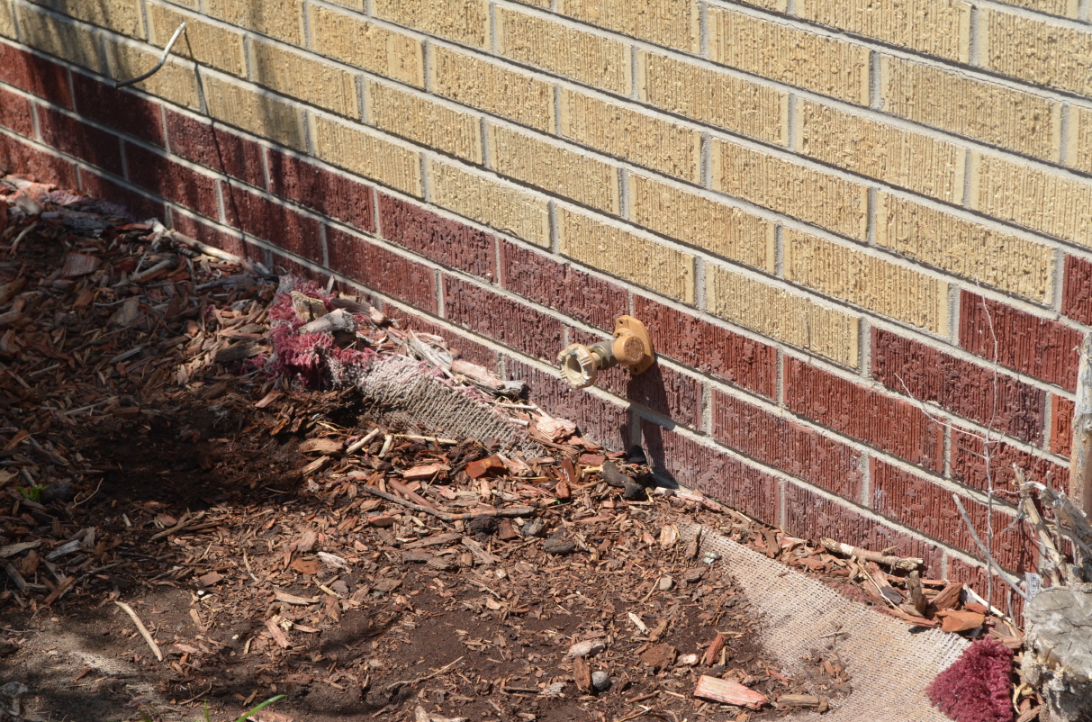벽면 수도꼭지가 조금 새는 것 같습니다. 한 방울씩 물이 떨어지네요.