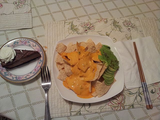 아보카도 타코 샐러드와 쵸코 케이크입니다.