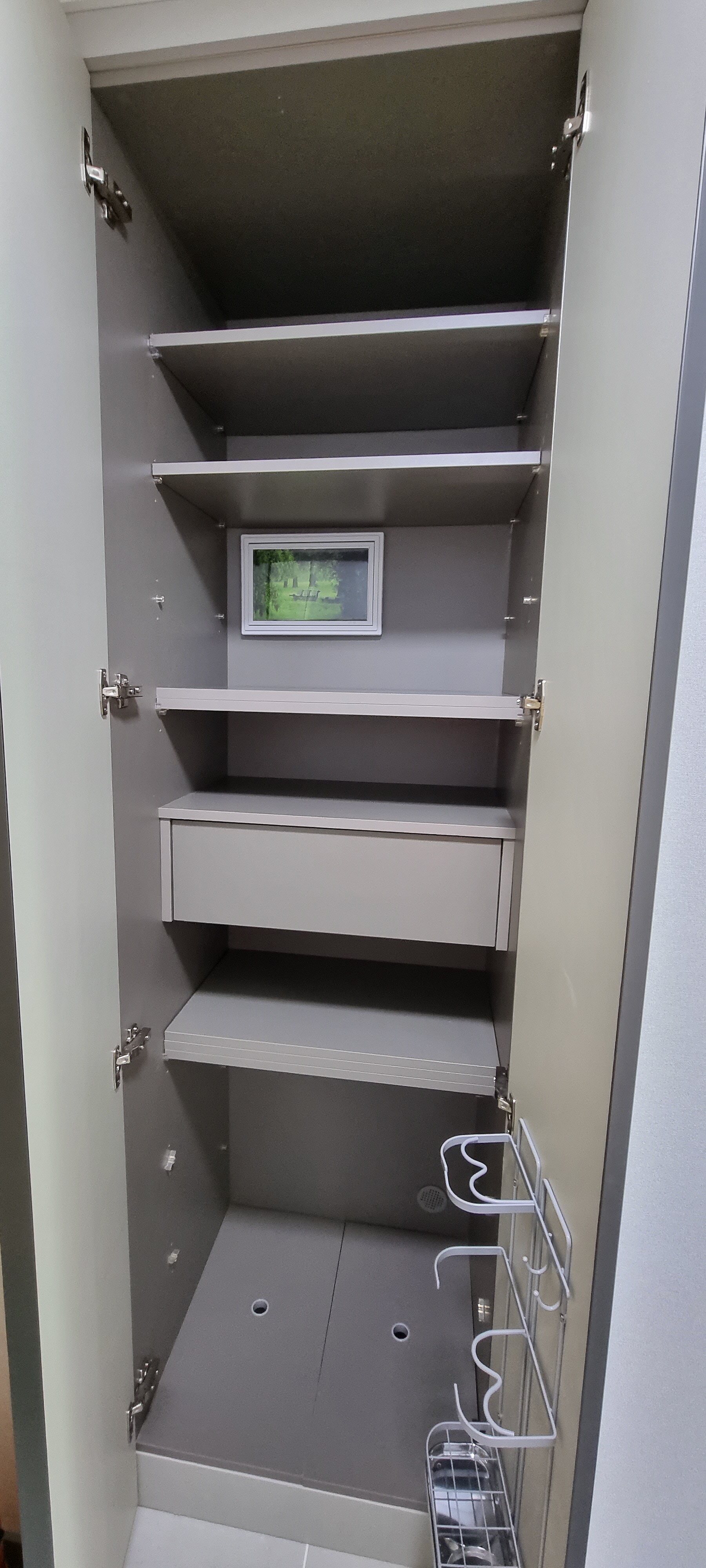 화장실 수납장도 깔끔하고 커서 수건과 화장지 등을 충분히