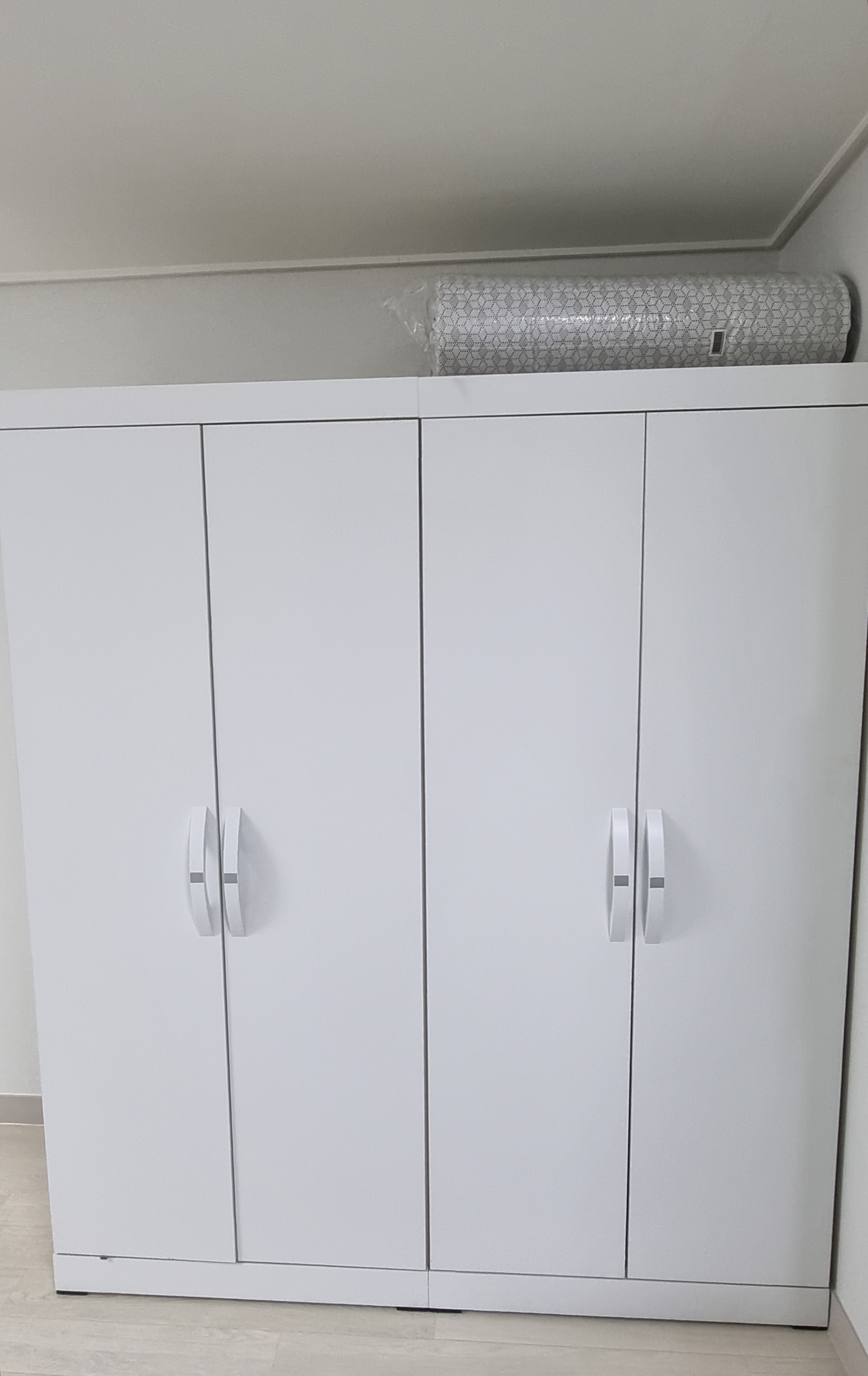 흰색 옷장 두개를 붙여서 설치했는데 이것도 마음에 듭니다.
