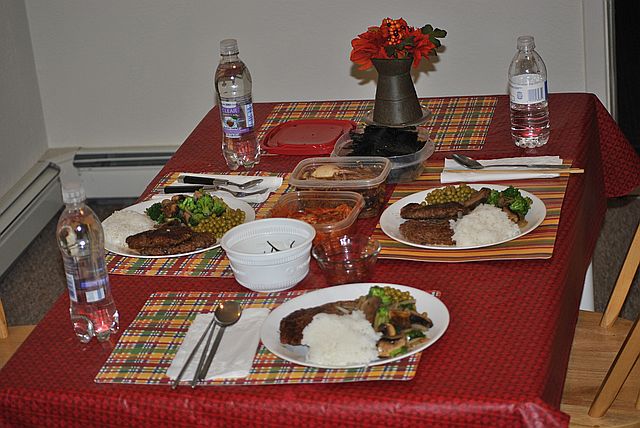빈과 밥을 같이 곁들였습니다. 다음에는 정식으로 떡갈비나 한번 해 보아야겠습니다.