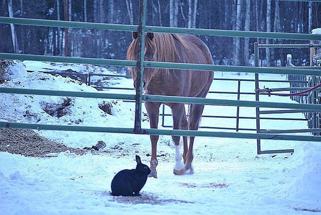 토끼를 보고 다가오는 말은 무슨 생각을 할까요?