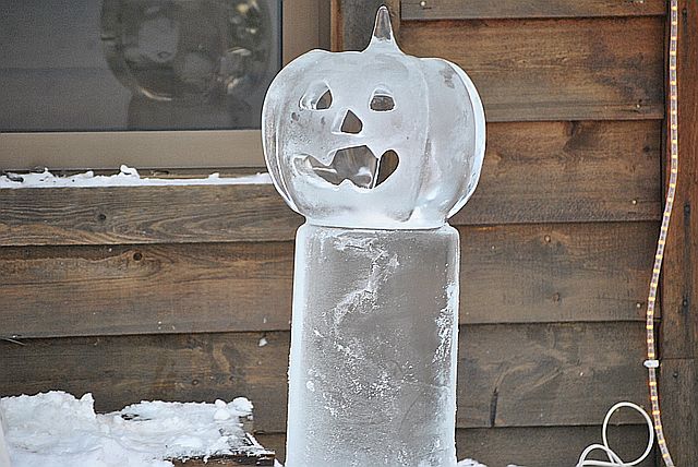 얼음조각 안에는 전구를 넣고 , 밤길을 안내해주는 이정표가 되어준답니다.