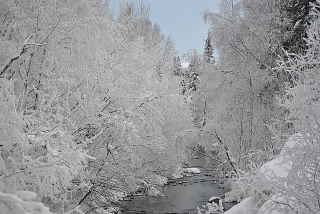 눈꽃 가득한 시냇물을 배경으로, 보기에도 이가 시릴 풍경은 절로 마음이 포근해지는