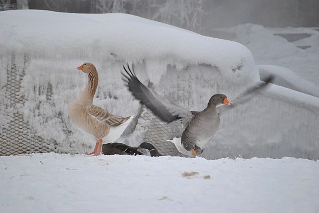거위가 날고 싶은가 봅니다.