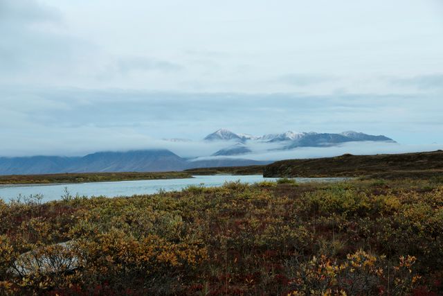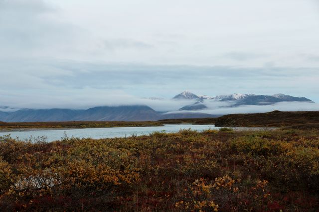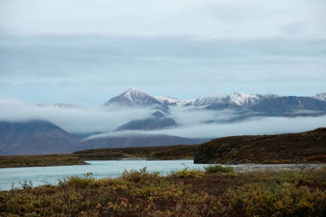 아래 툰드라 지역은 짙은 가을이고, 산들은 모두 겨울산들입니다.