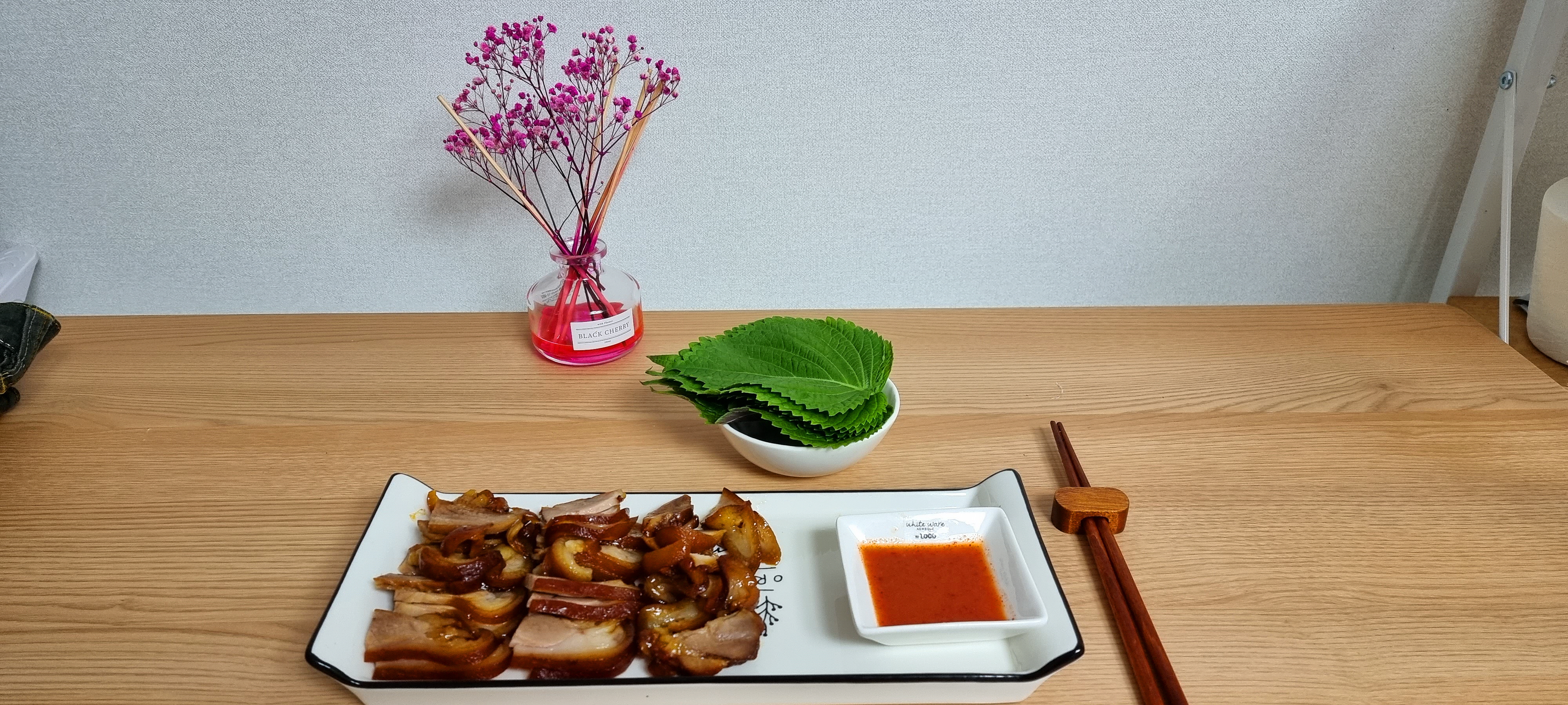 마늘과 함께 깻잎쌈을 싸서 먹었습니다.