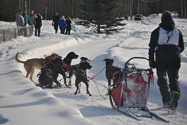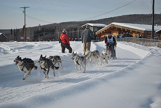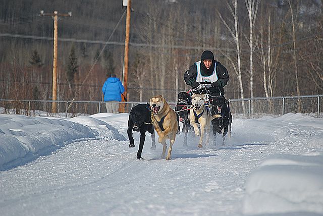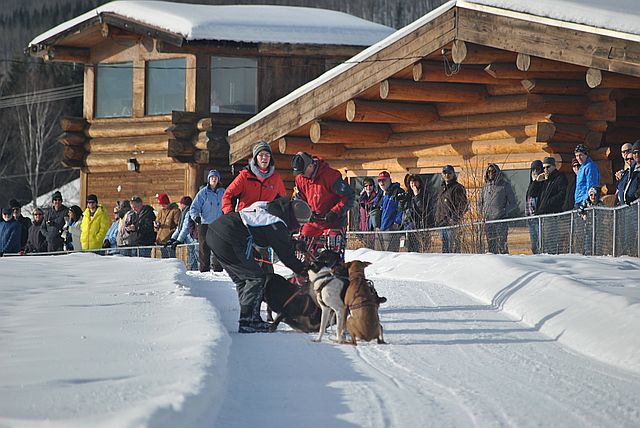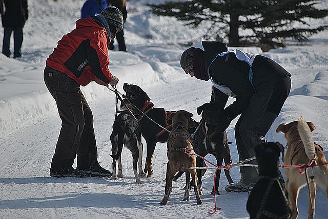 출발하자마자 개들이 다툼을 벌이는 바람에 썰매가 서 버렸습니다.