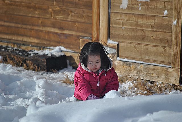 눈 장난에 여념이 없습니다.