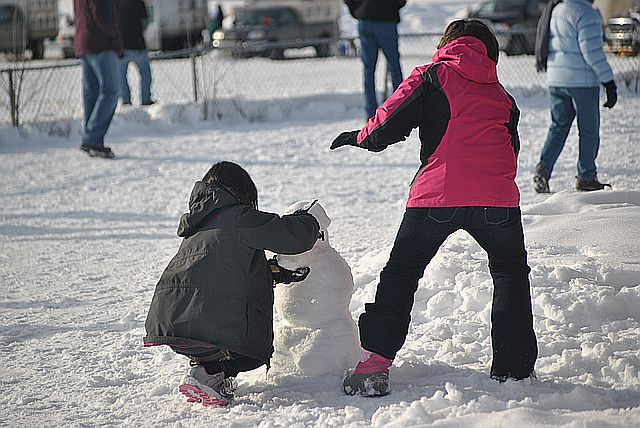 이 친구들은 눈사람을 만들며, 모처럼 휴일 나드리를 마음껏 즐기네요.