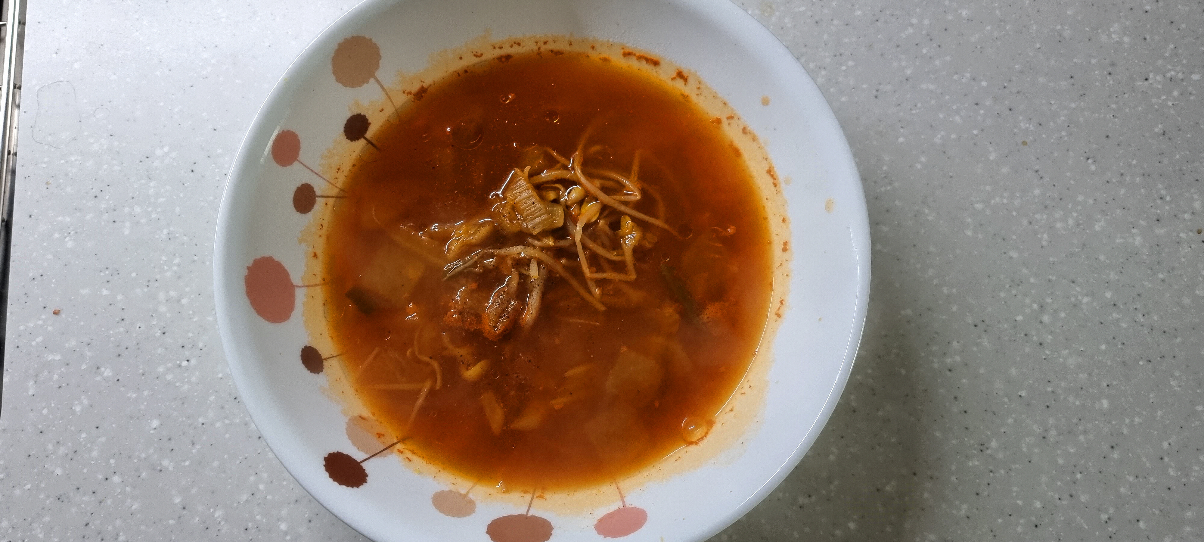 얼큰하면서도 국물이 시원한 김치 콩나물국입니다.