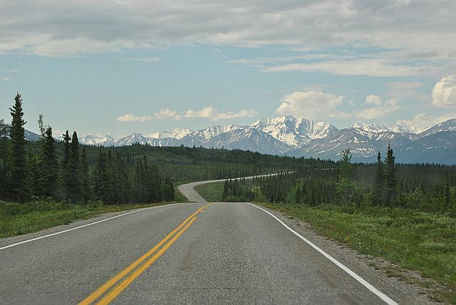 알래스카 도로는 이렇게 도로가 한 개입니다.