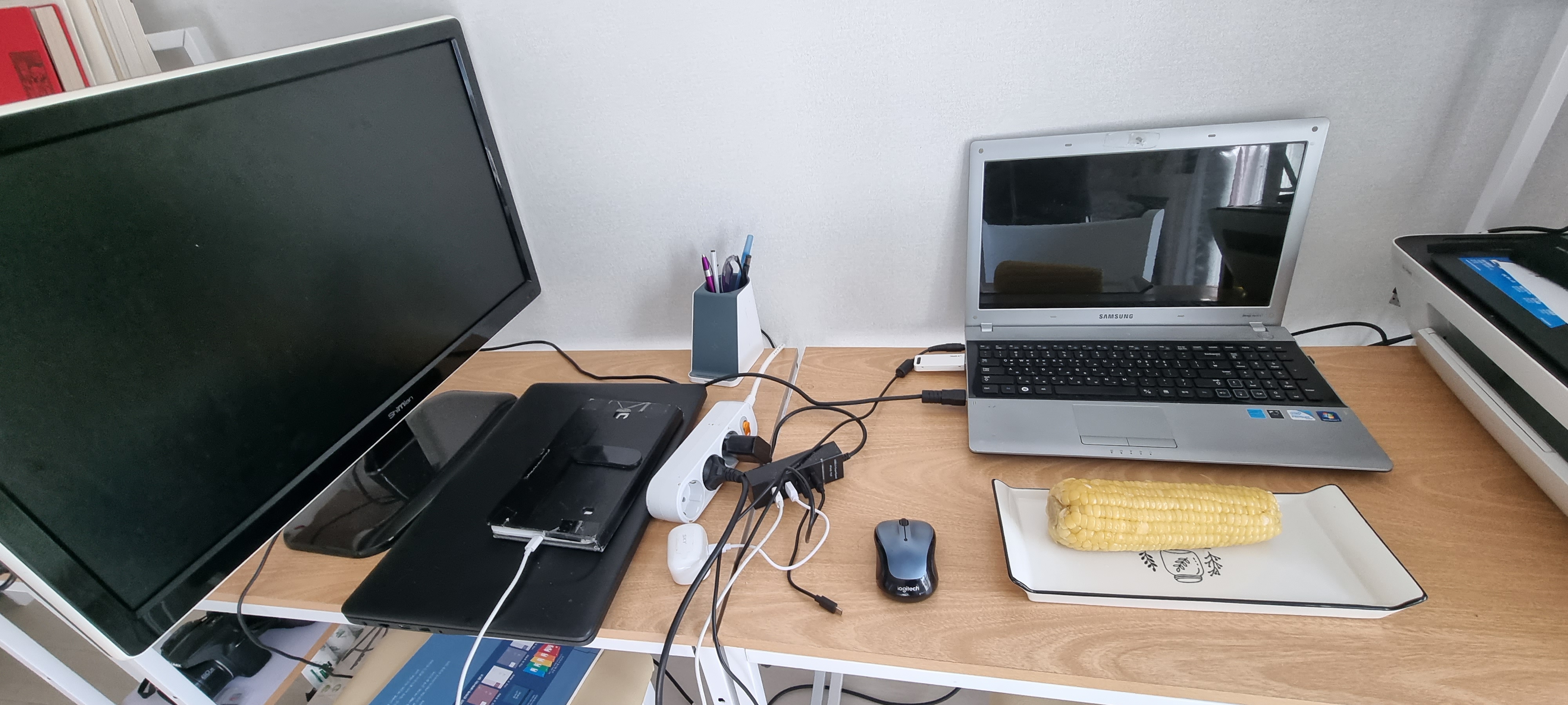 컴퓨터 책상에 옥수수 하나 올려놨습니다.
