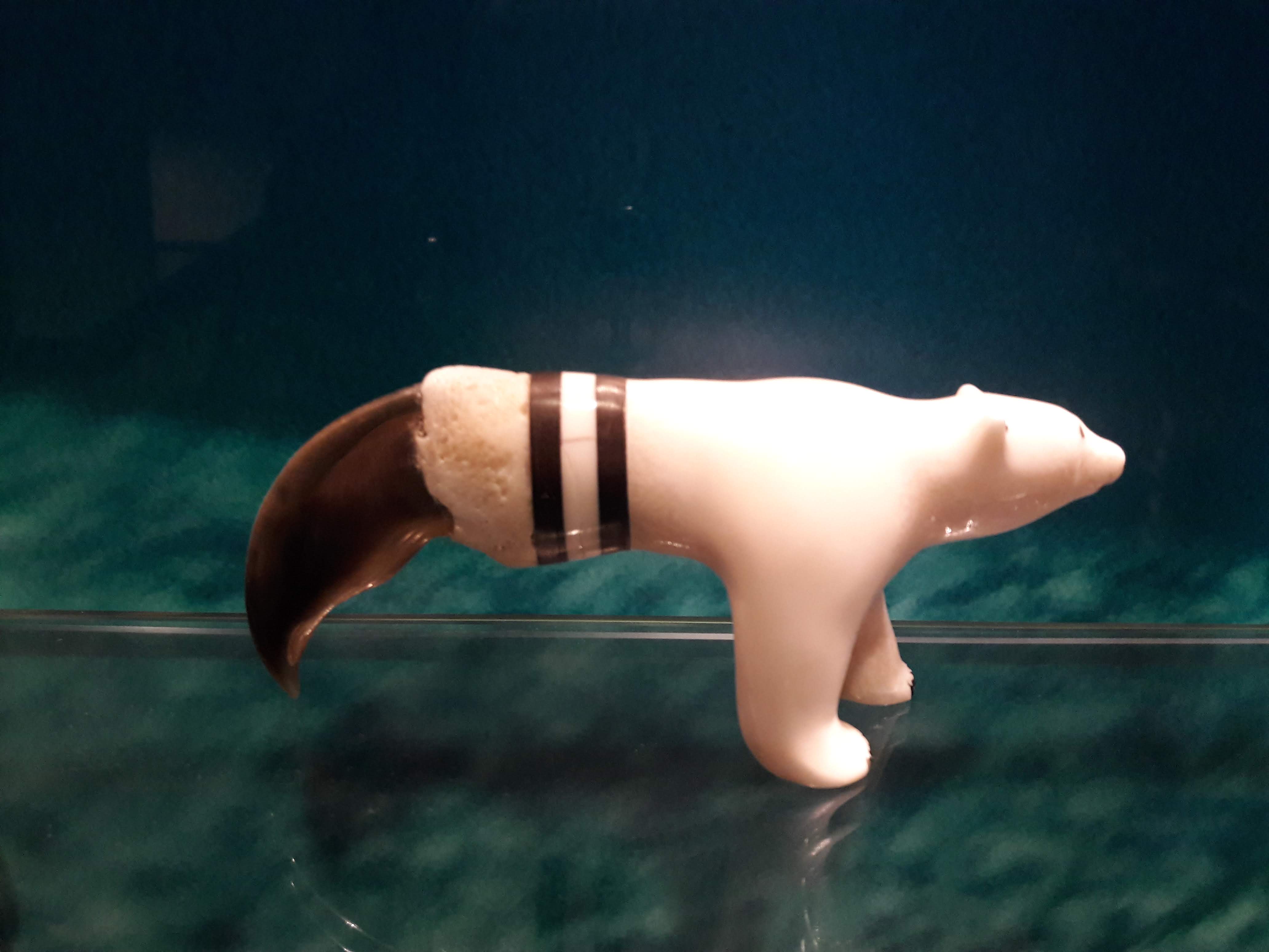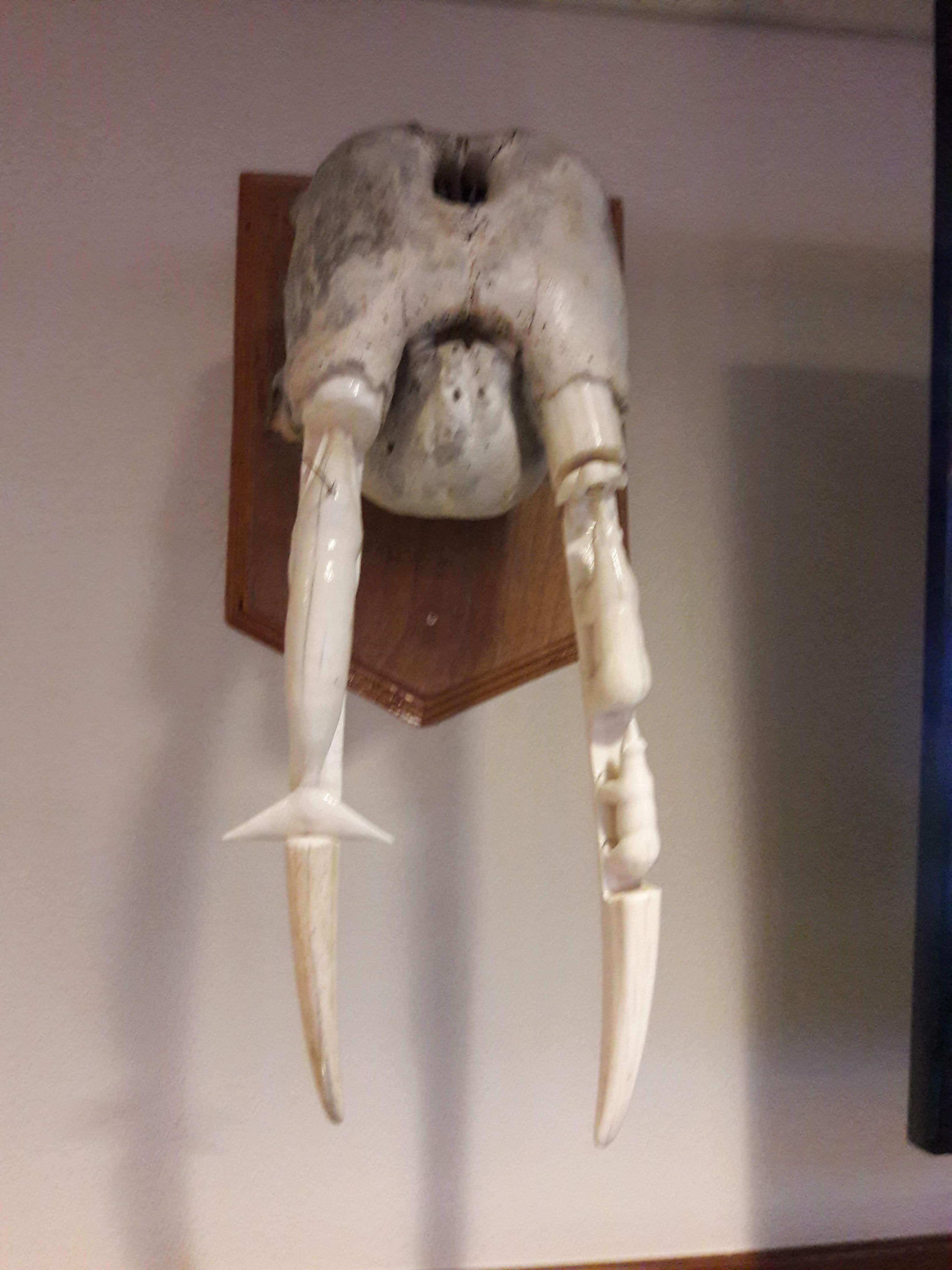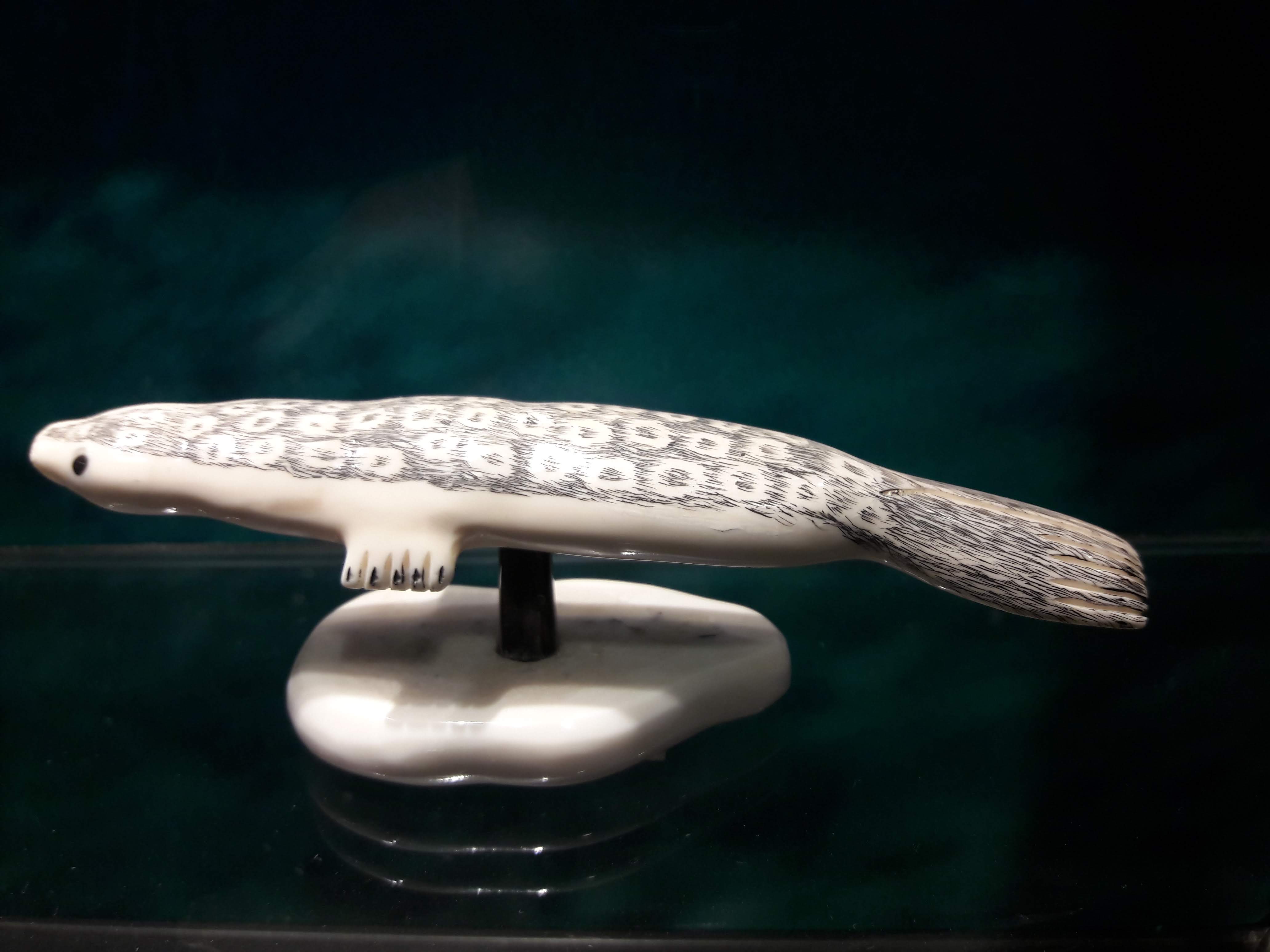 이건 바다코끼리 뿔과 백곰 발톱을 이용해 만든 조각입니다.