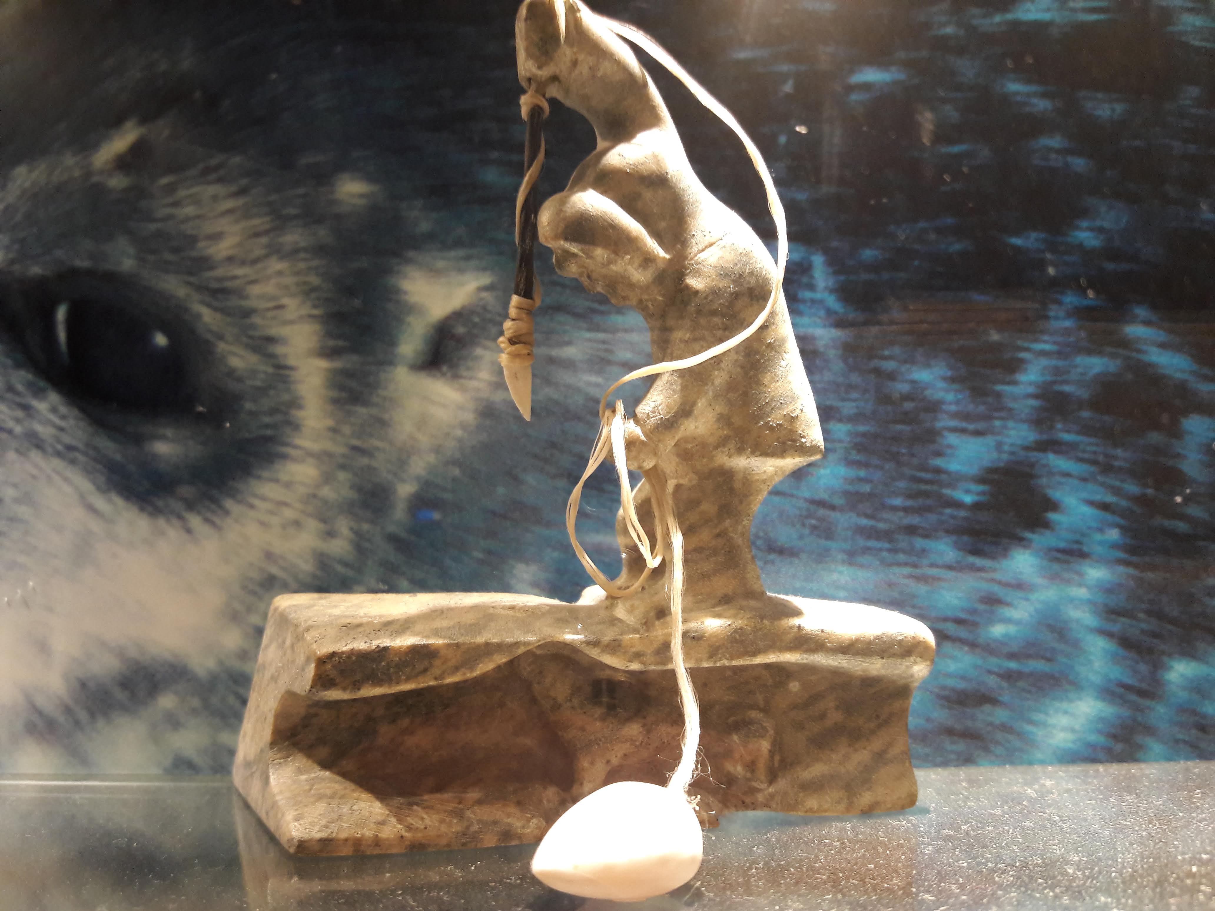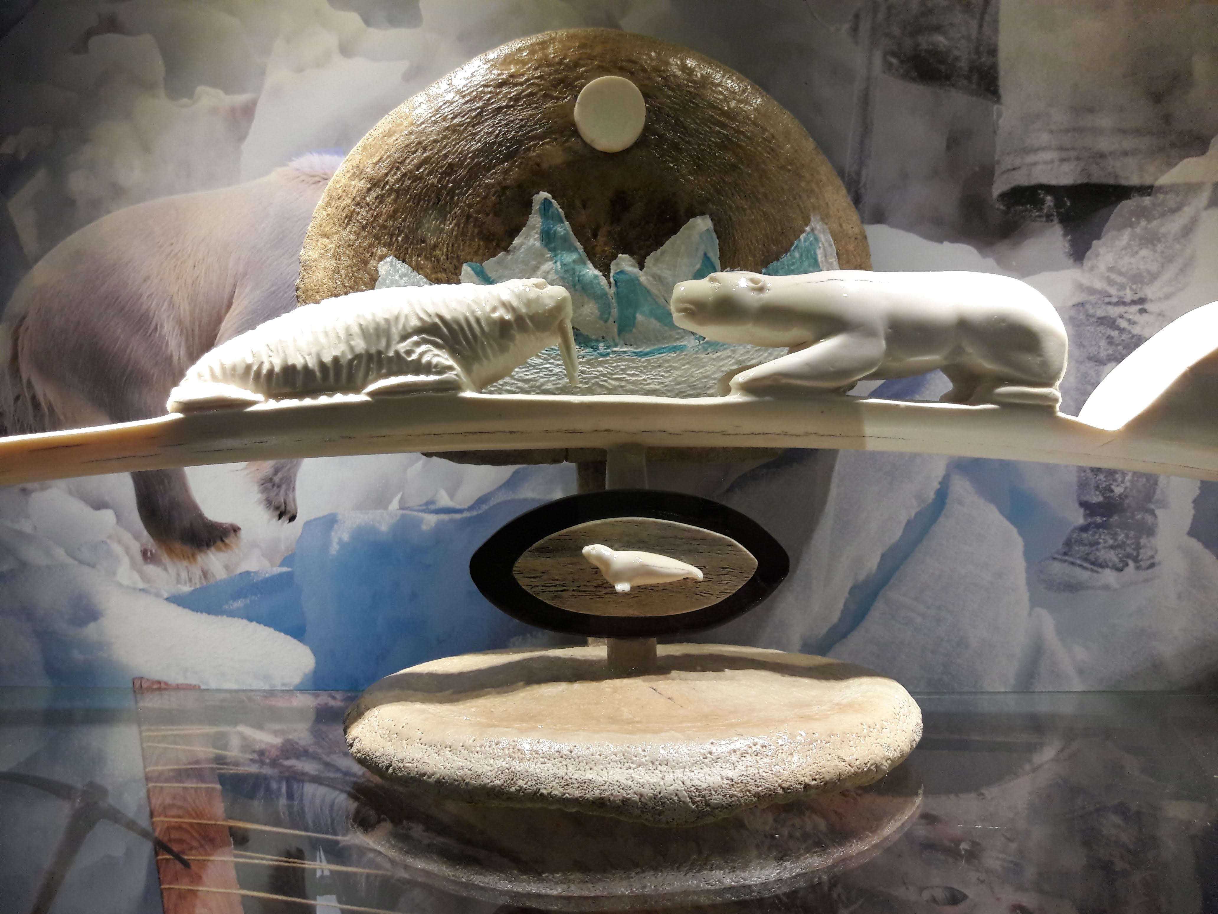 이건 바다코끼리 뿔과 백곰 발톱을 이용해 만든 조각입니다.