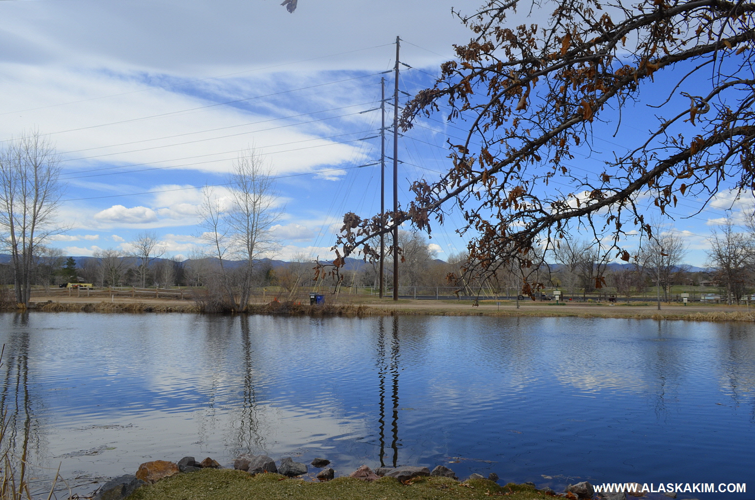 파란 하늘이 호수에 반사되어 여유로움과 한가로움이 적적히 배합되어 ,