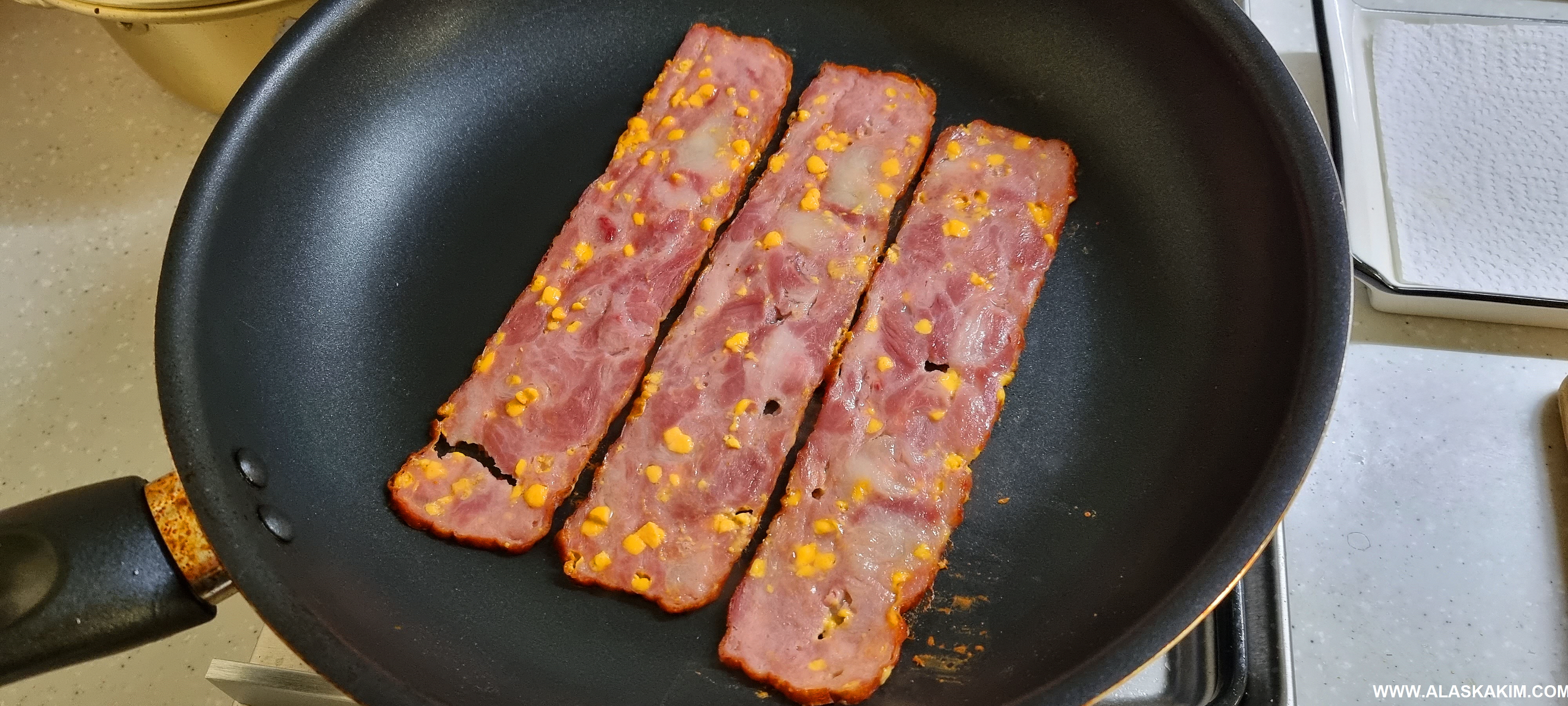 치즈 베이컨과 소세지 계란부침으로 아침을 든든하게